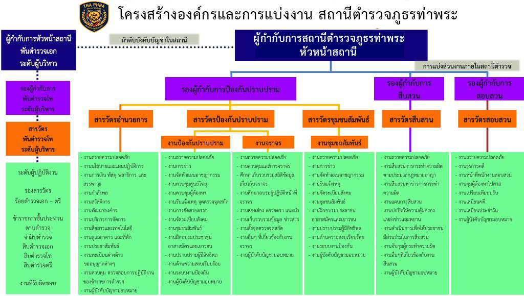 มีหน้าที่เกี่ยวกับการวางแผน อำนวยการ สั่งการ ควบคุม กำกับ ดูแล ตรวจสอบติดตามและประเมินผล ตลอดจนปฏิบัติงานในด้านการป้องกันอาชญากรรมและรักษาความสงบเรียบร้อยงานคณะกรรมการตรวจสอบและติดตามการบริหารงานตำรวจ งานชุมชนและมวลชนสัมพันธ์ในรูปแบบต่าง ๆ รวมทั้งงานที่มีลักษณะเกี่ยวข้องหรือเป็นส่วนประกอบของงานนี้ เพื่อมิให้เกิดอาชญากรรมขึ้นในเขตอำนาจ การรับผิดชอบหรือพื้นที่ปกครองของสถานีตำรวจ