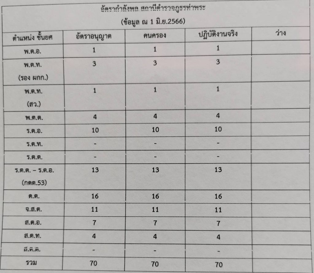 อัตรากำลังพล สภ.ท่าพระ